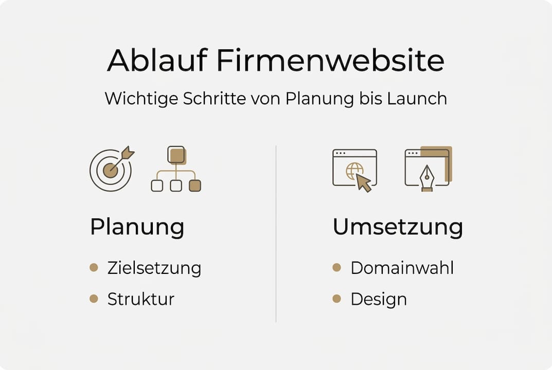 | Klare Zieldefinition zuerst | Nur mit klaren Zielen und geplanter Struktur wird die Firmenwebsite ein Erfolg. |