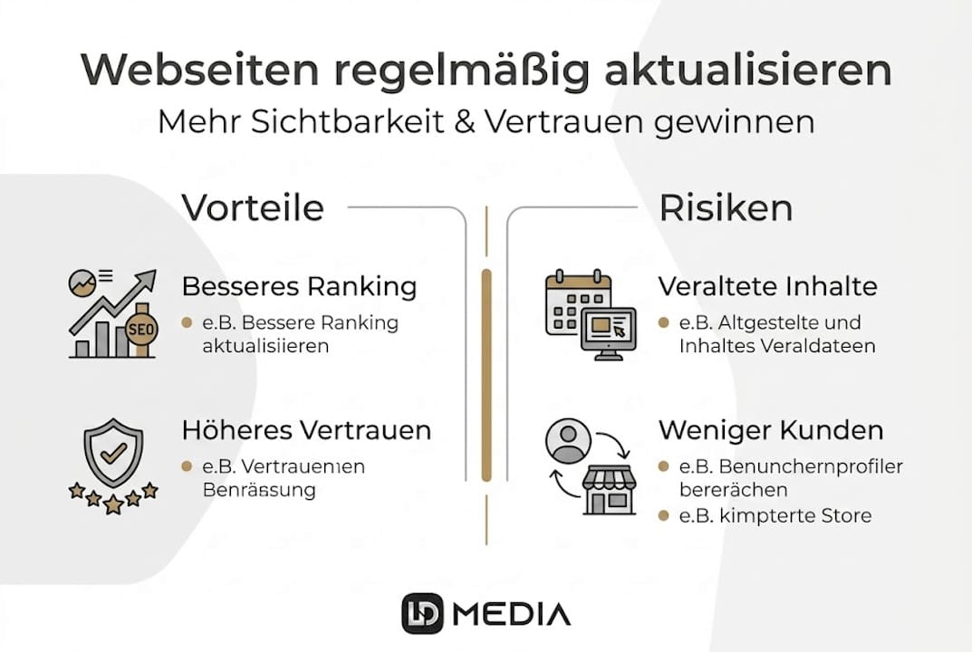 | Nutzervertrauen | Hoch durch aktuelle Infos | Niedrig durch veraltete Inhalte |